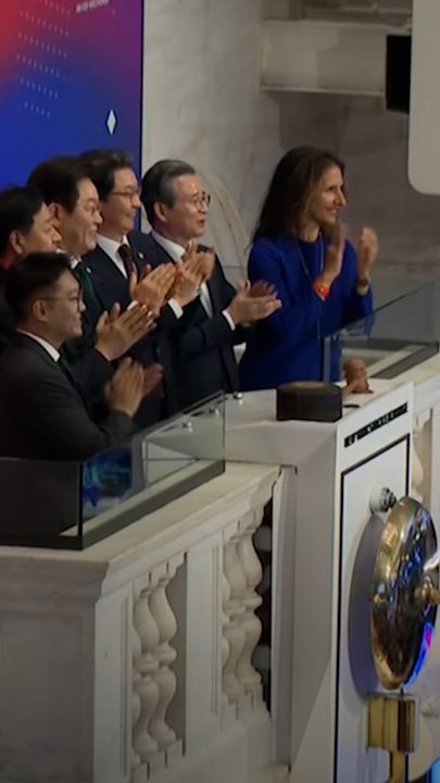 이재명 대통령이 25일(현지시간) 미국 뉴욕 증권거래소에서 열린 한국경제설명회 투자서밋에서 제인 프레이저 씨티그룹 회장의 도움을 받아 통역기를 착용하고 있다. 김현동 기자 |