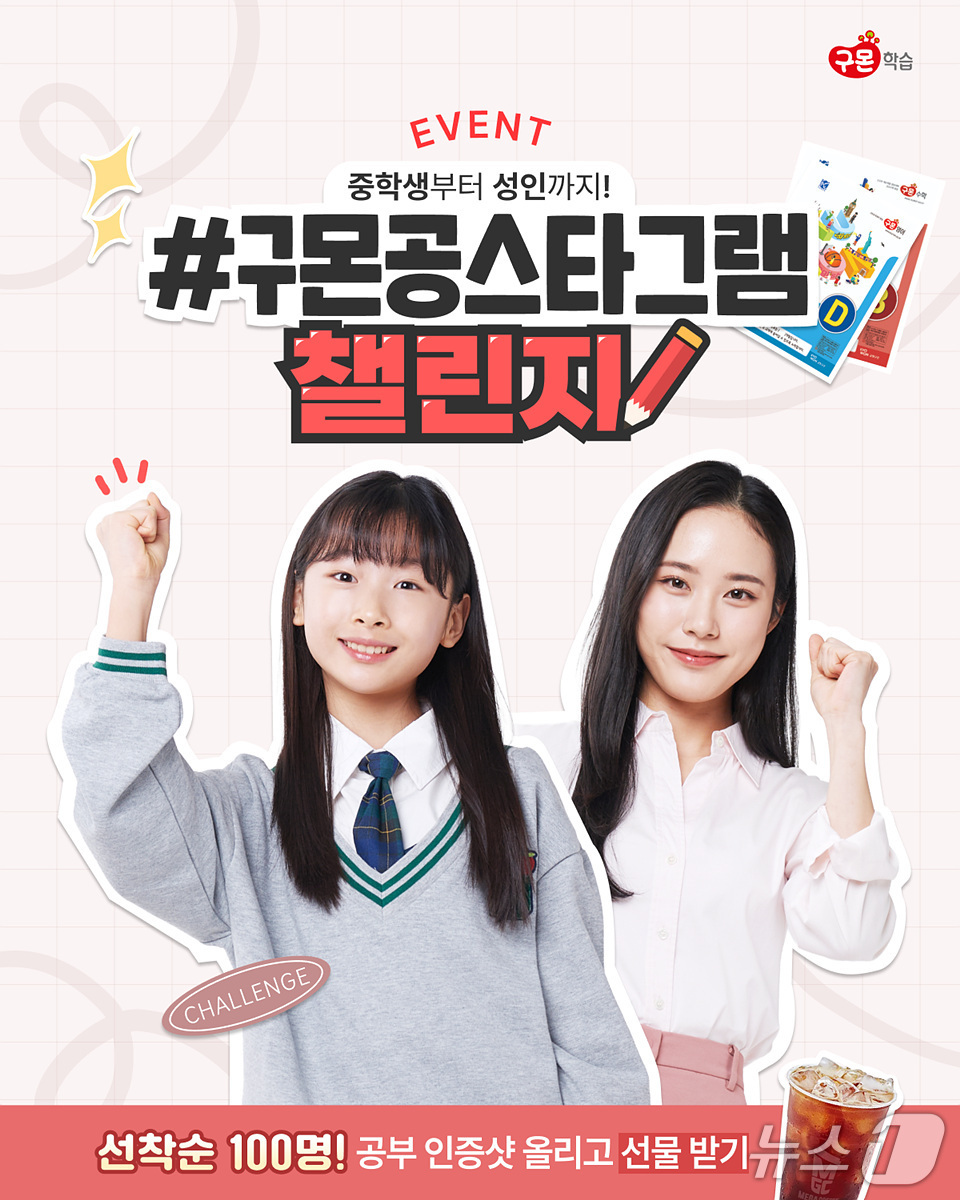 (서울=뉴스1) 김재현 기자 = 교원구몬은 신학기를 맞아 중·고등학생과 성인 회원 대상으로 공부 인증 챌린지 '공스타그램 챌린지' 이벤트를 다음 달 10일까지 진행한다고 26일 밝혔다.