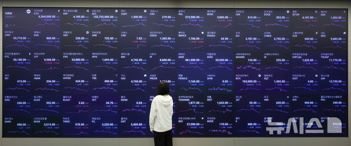 [서울=뉴시스] 이영환 기자 = 가상화폐가 랠리를 시작한 지난 8월 27일 오전 서울 강남구 업비트 고객센터 전광판에 비트코인, 이더리움, 엑스알피(리플) 등 가상화폐 시세가 표시되고 있다. 2025.08.27. 20hwan@newsis.com |