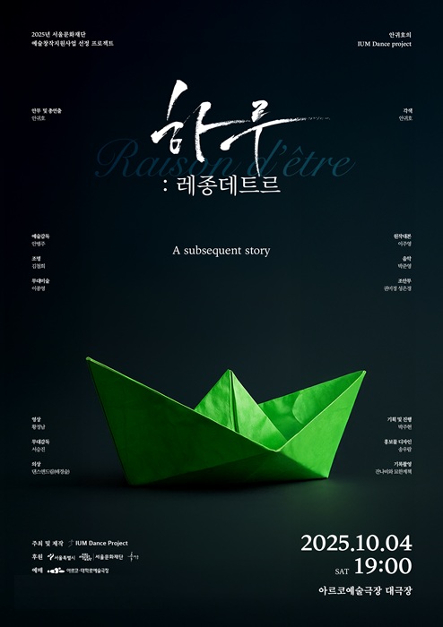 (문화뉴스 백현우 기자) 대한민국무용대상 대통령상 수상작 <하루: 레종데트르>가 오는 10월 4일(토) 오후 7시, 서울 대학로 아르코예술극장 대극장에서 관객들과 다시 만난다. 이번 공연은 IUM DANCE PROJECT 예술감독이자 안무가인 안귀호의 기획으로, 서울문화재단 예술창작지원사업에 선정되어 기존 작품을 재구성·확대 제작한 무대다.
