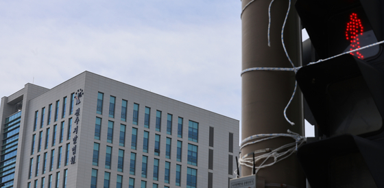 고위공직자범죄수사처가 고교 동문인 전주지법 소속 A 부장판사와 지역 로펌 B 변호사 간 뇌물 의혹과 관련해 전주지법을 압수수색한 26일 법원 청사 주변에 빨간 신호등이 켜져 있다. 연합뉴스 |
