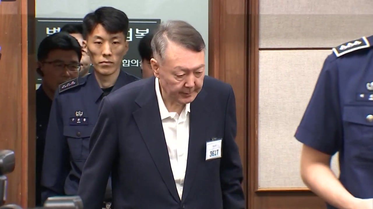 내란 우두머리 혐의 재판에 11회 연속 불출석한 윤 전 대통령은 왼쪽 가슴에 수용번호 '3617'이 적힌 배치를 차고 법정에 나왔습니다.