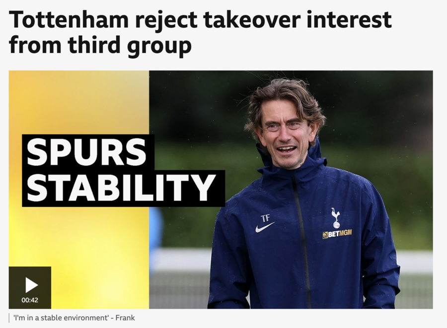 이번 제안은 토트넘이 거부한 세 번째 인수 시도였다. 아만다 스테블리가 이끄는 컨소시엄과 홍콩 파이어호크 홀딩스가 각각 인수 의사를 밝힌 바 있다. 그러나 당시에도 에닉 그룹은 매각 불가 방침을 분명히 했다.