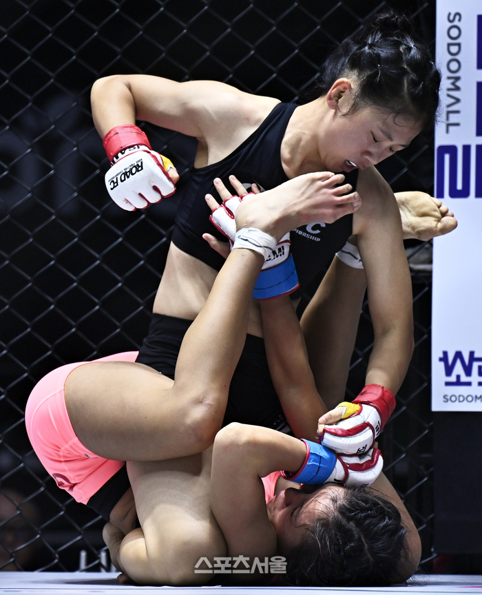 이보미가 야코에게 무수한 파운딩을 쏟으며 경기를 끝내고 있다. 이주상기자 rainbow@sportsseoul.com |