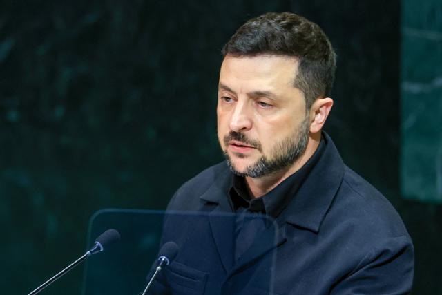 볼로디미르 젤렌스키 우크라이나 대통령이 24일 미국 뉴욕 유엔본부에서 열린 제80회 유엔총회 일반토의에 참석해 발언하고 있다. 뉴욕=타스 연합뉴스 |