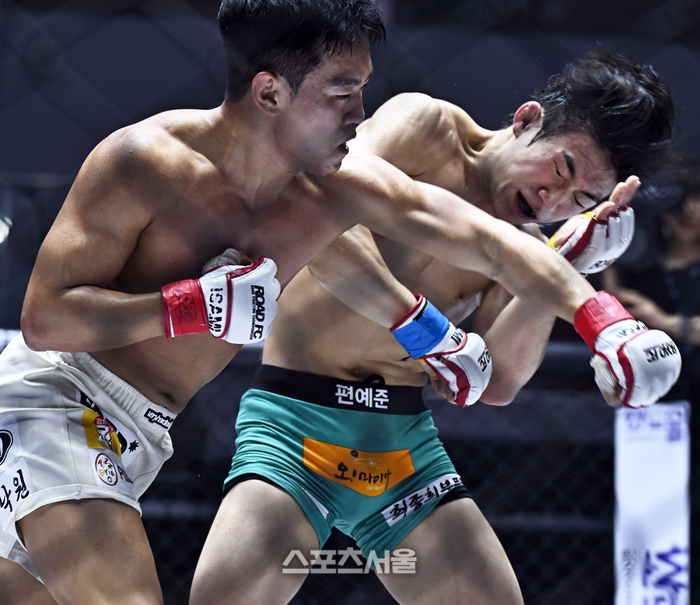이정현이 편예준의 얼굴에 펀치를 성공시키고 있다. 이주상기자 rainbow@sportsseoul.com |