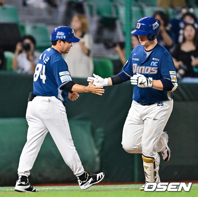 NC는 27일 광주-기아 챔피언스필드에서 열린 2025 프로야구 KIA 타이거즈와의 경기를 2-0으로 승리했다. 김형준이 선제 솔로홈런, 데이비슨이 34호 솔로홈런을 차례로 날렸다. 우완 김녹원이 KIA 타자들을 잘 막아냈고 불펜진도 철벽투구를 했다. 5위 KT 위즈에 1.5경기차로 추격했다. 남은 4경기에서 전승을 한다면 역전 가능성도 열려있다.