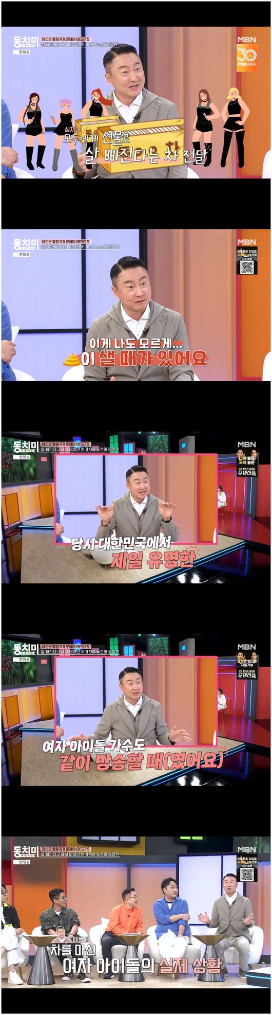 그는 “그 차를 구매해주는 바이어에게 선물을 위해 많이 샀다. 여자 아이돌들에게는 ‘오빠가 선물로 줄게’라면서 선물했다”라면서 “이 차가 단점이 뭐냐면, 나도 모르게 변의를 참지 못한다. 여자 아이돌들도 촬영 중에 촬영을 중단했다. 야외 촬영 중에 갑자기 일어난 일이었다”라고 말해 모두를 놀라게 했다.