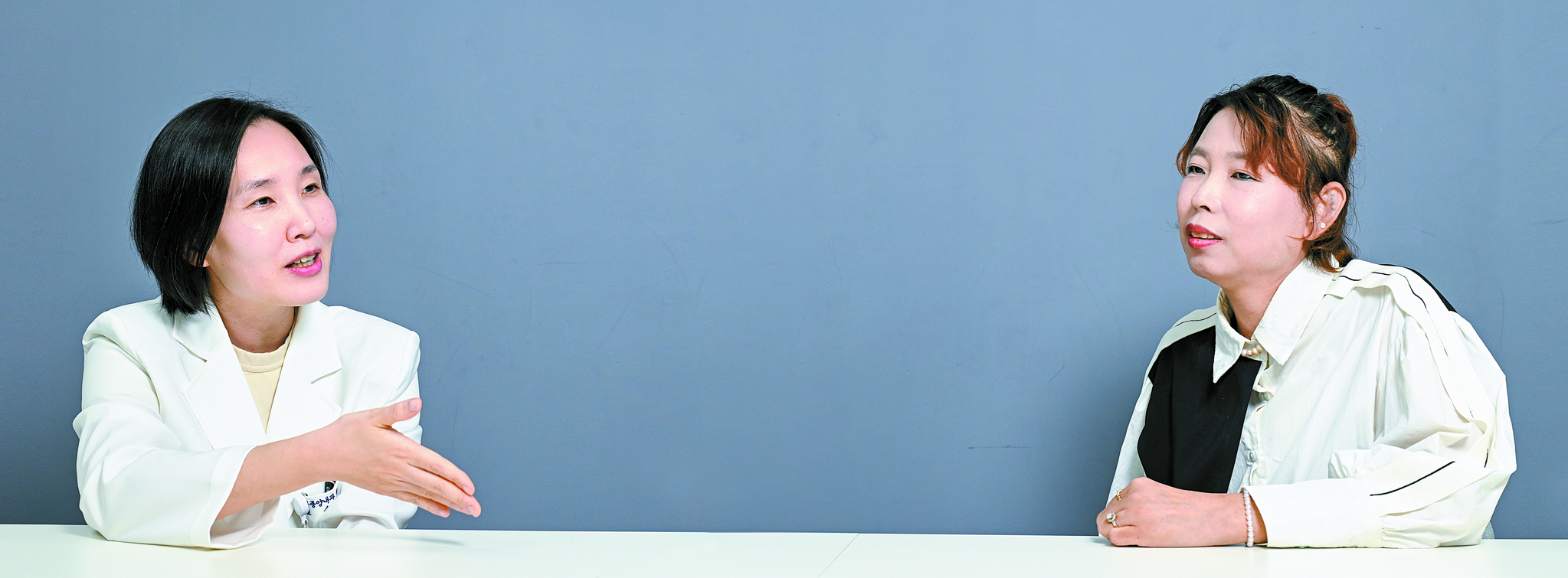 고려대안암병원 종양내과 최윤지 교수(왼쪽)와 10여 년째 최 교수에게 진료를 받는 이인향씨가 그간의 치료 성과에 관해 이야기를 나누고 있다. 김동하 객원기자 |
