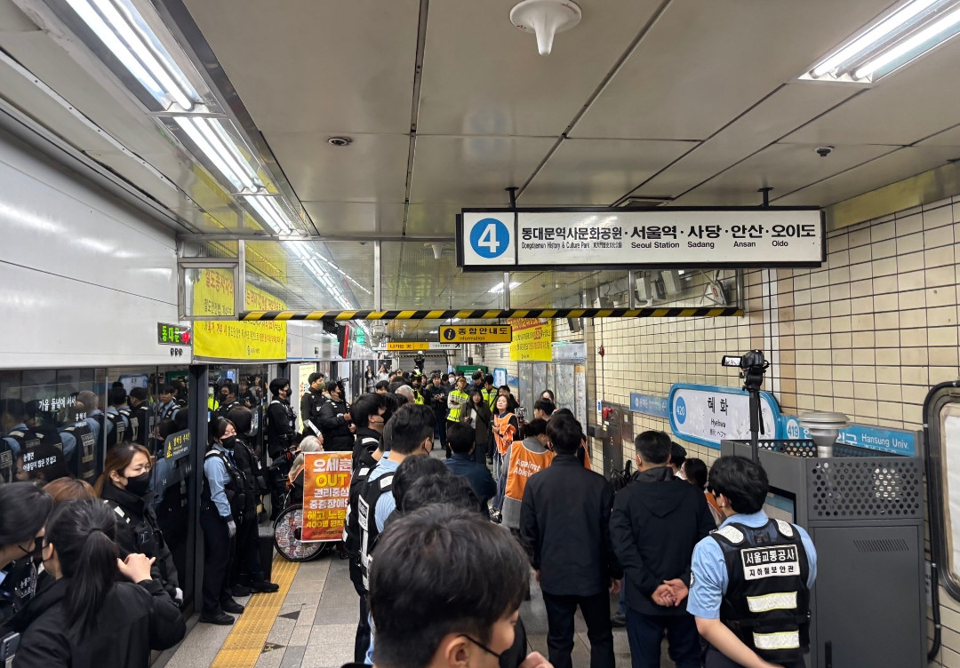 서울교통공사에 따르면 이날 전장연은 서울 지하철 1호선 남영역에서도 시위를 이어갔다. 해당 여파로 서울역에서 약 25분간 열차 운행이 멈춰 섰다.