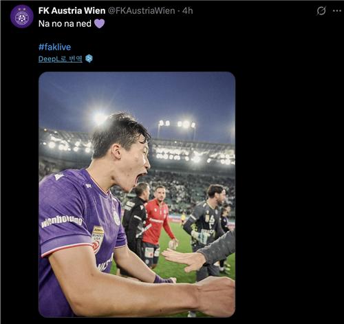이적 한 달 만에 득점포…아우스트리아 빈 3-1 승리에 앞장서