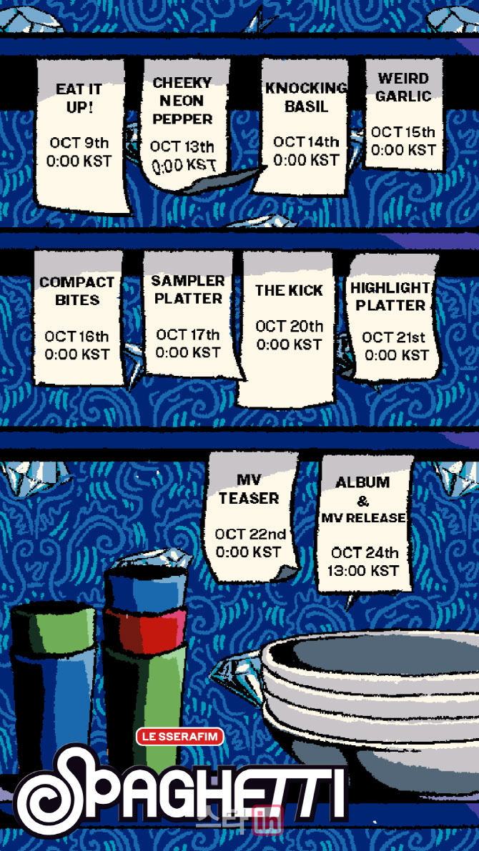 르세라핌은 이날 팬 플랫폼 위버스에 올린 컴백 예고 게시물에 ‘휘감기는 스파게티처럼 벗어날 수 없는 매력’이라는 문구를 담아 신곡에 대한 힌트를 던졌다. 유튜브 등 공식 온라인 채널에는 애니메이션 형태로 제작한 타임 테이블 영상을 게재해 컴백 관련 콘텐츠 공개 일정을 알렸다.