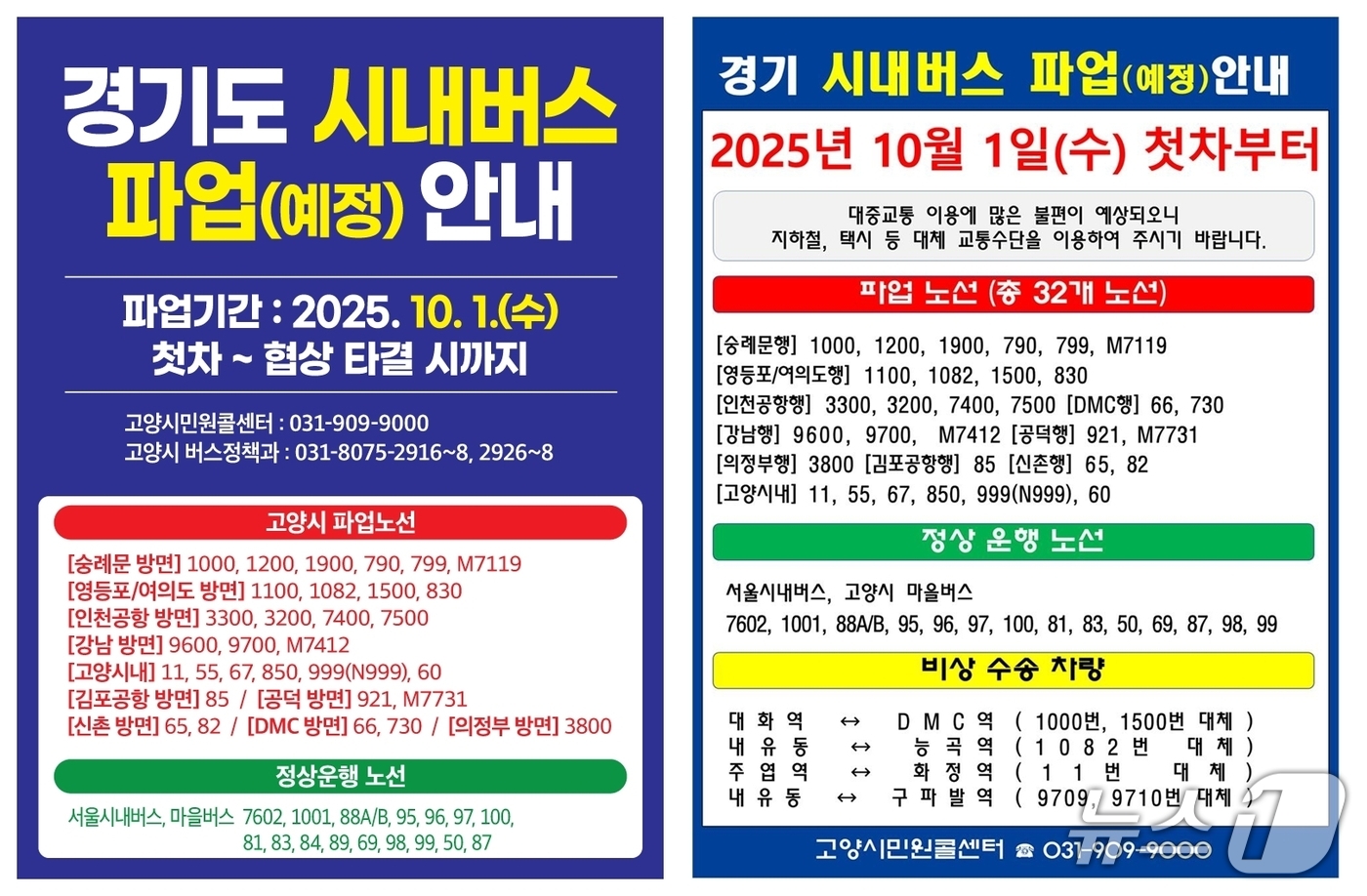 고양시는 파업 기간 중 마을버스·전세버스·관용버스·비파업 시내버스 등 가용 가능한 모든 교통수단을 총동원할 방침이다.