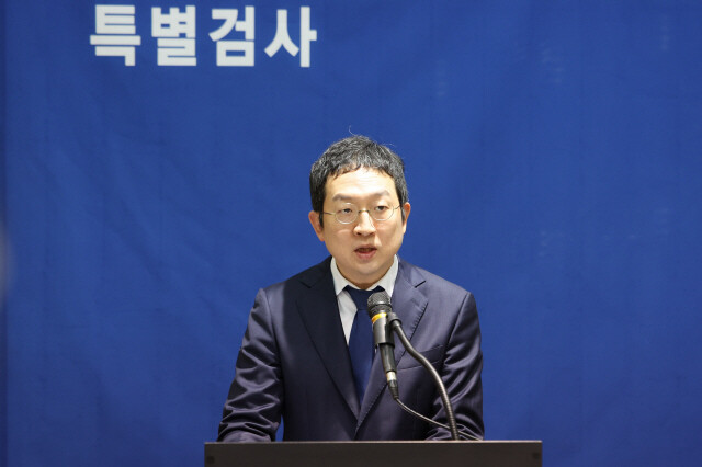 채 상병 사건 외압 의혹을 수사하는 이명현 특별검사팀 정민영 특검보가 지난 24일 오전 서울 서초구 특검팀 사무실 브리핑룸에서 언론 브리핑을 하고 있다. 최현수 기자 emd@hani.co.kr |
