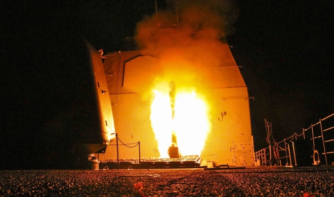 토마호크 순항미사일이 미 함선에서 발사되고 있다. 미 해군 제공 |