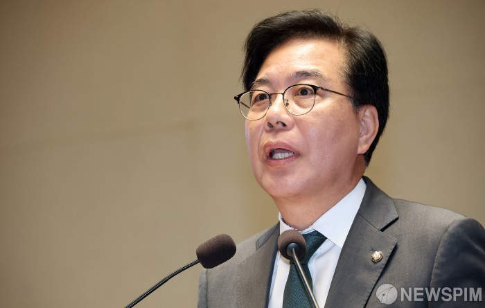 [서울=뉴스핌] 정일구 기자 = 송언석 국민의힘 원내대표가 29일 오후 서울 여의도 국회에서 열린 정책 의원총회에서 모두발언을 하고 있다. 2025.09.29 mironj19@newspim.com