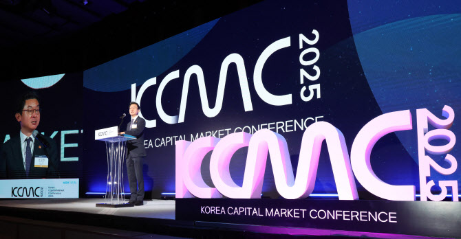 이억원 금융위원회 위원장이 29일 서울 중구 웨스틴 조선 서울에서 열린 ‘KCMC 2025’(Korea Capital Market Conference 2025)에서 축사를 하고 있다. (사진=한국거래소) |