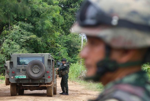 지난 19일 캄보디아 국경지대인 태국 사카오주 반농야까오에서 태국군이 경계를 서고 있다. 반농야까오=EPA 연합뉴스 |