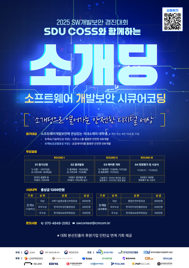 대회는 교육부 혁신융합대학사업과 연계해 추진되며, 대학생들이 1인부터 4인 이하 팀을 구성해 설계 단계부터 보안을 내재화한 개발 보안 역량을 겨루는 방식으로 진행된다. 대회는 A트랙(기술혁신성)과 B트랙(공공활용성) 등 두 부문으로 나눠 운영된다. 관심 분야에 따라 참여가 가능하다.