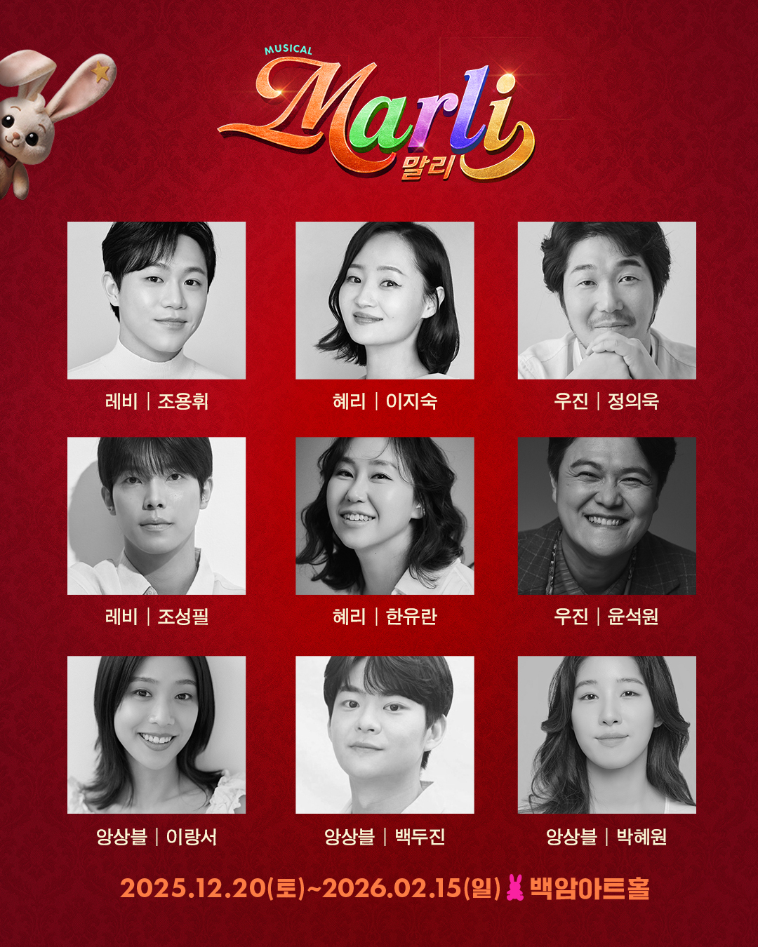 올 겨울 관객들의 눈과 귀부터 마음까지 사로잡을 뮤지컬 ‘말리’에 많은 이들의 관심이 집중되고 있는 가운데, 뮤지컬 ‘말리’는 오는 12월 20일부터 2026년 2월 15일까지 서울 백암아트홀에서 공연된다.