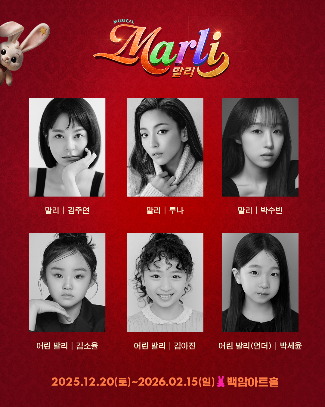 올 겨울 관객들의 눈과 귀부터 마음까지 사로잡을 뮤지컬 '말리'에 많은 이들의 관심이 집중되고 있는 가운데, 뮤지컬 '말리'는 오는 12월 20일부터 2026년 2월 15일까지 서울 백암아트홀에서 공연된다.
