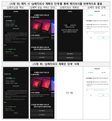 유형별로 보면 가입보다 탈퇴 절차를 복잡하게 하는 사례가 15건으로 가장 많았다. 사업자들은 웹·앱을 통해 예약 및 계약 체결이 가능한 경우 취소·해지 신청도 웹·앱을 통해 가능하도록 시정했다. 멤버십 해지 시 반복적으로 해지 의사를 묻는 단계도 축소했다.