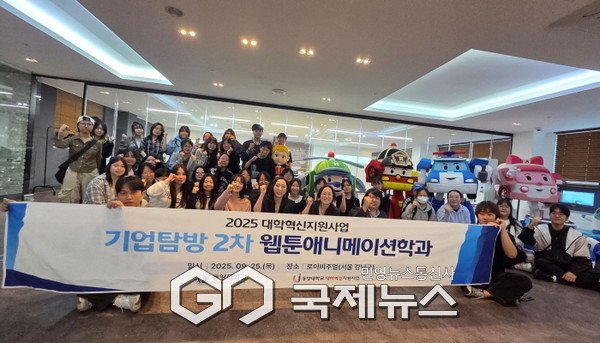 (영주=국제뉴스) 백성호 기자 = 동양대학교 웹툰애니메이션학과는 웹툰애니메이션 인재 양성을 위해 지난 25일 애니메이션 기업 '(주)로이비주얼' 에 현장 탐방을 진행했다고 밝혔다.