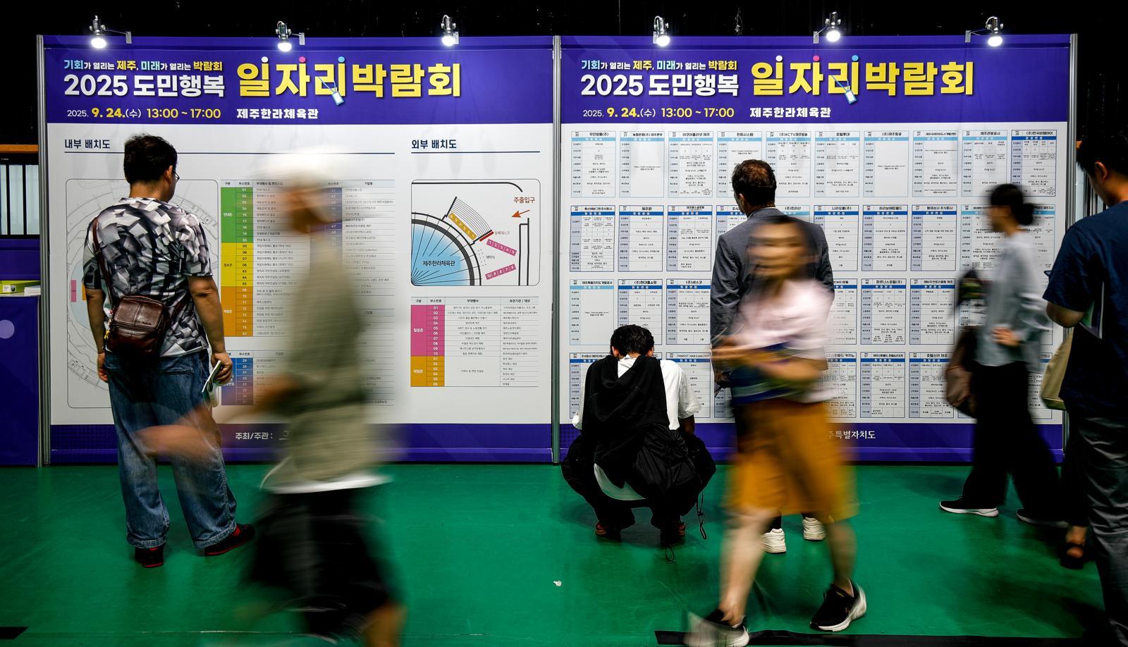 24일 오후 제주시 오라1동 한라체육관에서 제주특별자치도 주최로 열린 ‘2025 도민행복 일자리 박람회’에 구직자들의 발걸음이 이어지고 있다. 2025.09.24 뉴시스 |