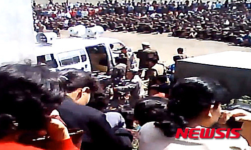 기사와 직접적인 관련없음. 사진은 2013년 9월 북한에서 미국영화를 봤다는 이유로 남성들이 공개재판을 받는 모습. /사진=뉴시스 |