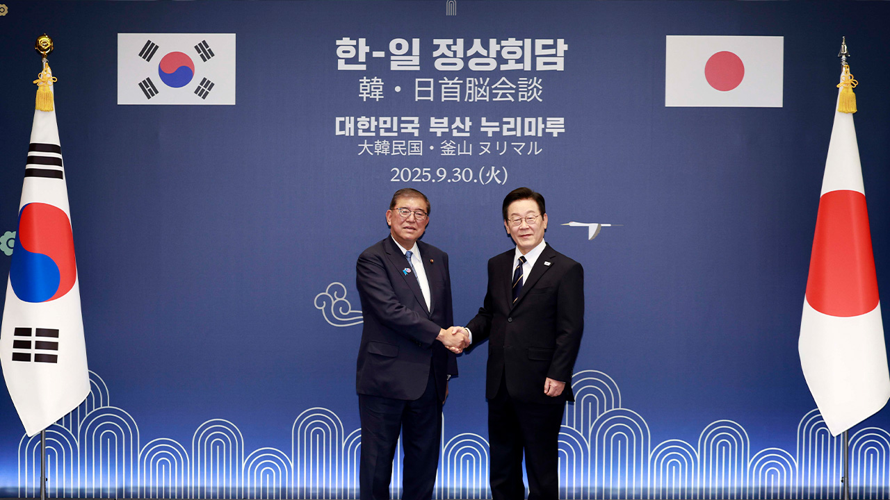 ▲ 이재명 대통령과 이시바 시게루 일본 총리가 30일 부산 누리마루 APEC 하우스에서 정상회담에 앞서 악수하고 있다.