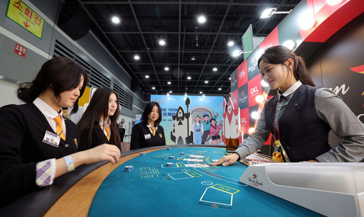 30일 서울 서초구 aT센터에서 열린 ‘2025 관광 일자리 페스타’에서 고등학생들이 딜러 등 카지노 체험을 하고 있다.