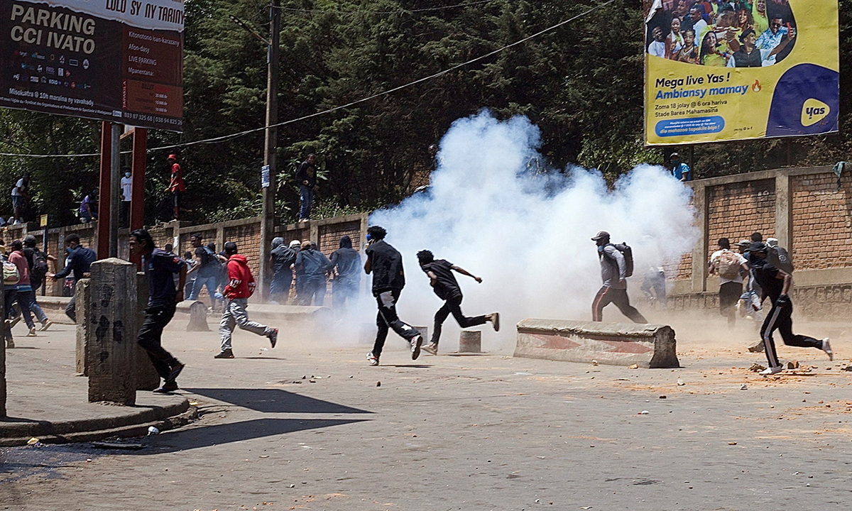 9월 29일(현지시간) 마다가스카르 안타나나리보 대학교 근처에서 대규모 반정부 집회가 열린 가운데 경찰이 최루탄을 사용해 시위를 진압하고 있다. 로이터연합뉴스 |
