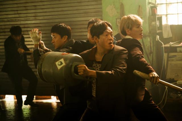 영화 '보스'에서 조직의 2인자이자 절친한 동료로 등장하는 정경호(오른쪽부터) 박지환 조우진. 하이브미디어코프 제공 |