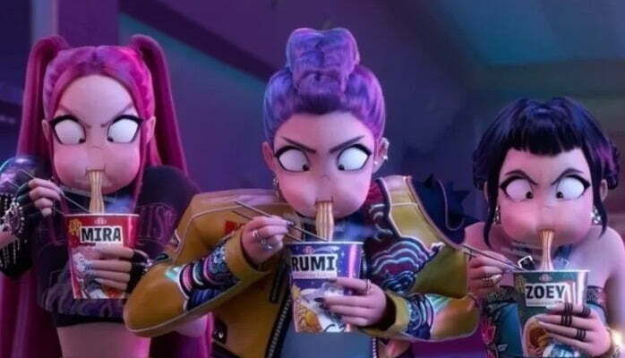 이런 동영상은 어린 출연자들이 마치 애니메이션 영화 속 케데헌의 캐릭터처럼 소형 컵라면을 맛보는 내용이다.