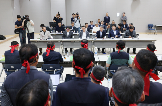 지난달 30일 경기 수원시 영통구 경기지방노동위원회에서 경기도버스노동조합협의회(노조)와 경기도버스운송사업조합(사측)의 최종 조정회의가 열리고 있다. 뉴스1 |