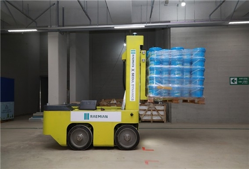 자율주행 지게차와 자재 이동 로봇은 작업이 없는 야간에 자재를 자동으로 운반해 주간 작업 공정 간섭을 최소화한다. 자율주행 지게차가 현장에 쌓인 팔레트를 인식해 아파트 동별 지하의 지정된 장소로 운반하면 자재 이동 로봇이 이를 싣고 엘리베이터를 호출해 탑승한 뒤 아파트 호실 내부까지 운반한다.