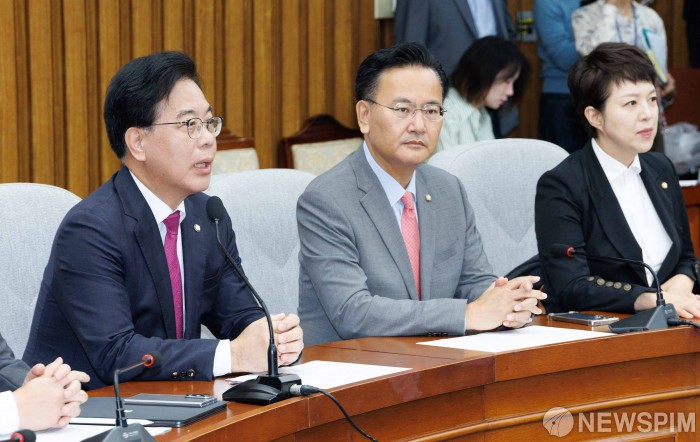 [서울=뉴스핌] 윤창빈 기자 = 송언석 국민의힘 원내대표가 1일 오전 서울 여의도 국회에서 열린 상임위원장 및 간사단 회의에서 모두발언을 하고 있다. 2025.10.01 pangbin@newspim.com