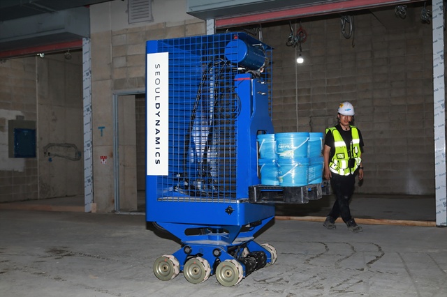 먼저 서울다이나믹스의 자율주행 지게차와 자재 이동 로봇은 현장에서 작업이 없는 야간에 자재를 자동으로 운반함으로써 주간 작업 공정 간섭을 최소화하고 작업 효율을 높인다. 자율주행 지게차는 현장에 야적된 팔레트를 인식해 자재를 지하의 아파트 각 동 별 지정된 장소로 운반한다. 이후 자재 이동 로봇은 분배된 자재를 싣고 엘리베이터를 호출하고 탑승해 아파트 호실 내부까지 운반·하역한다.