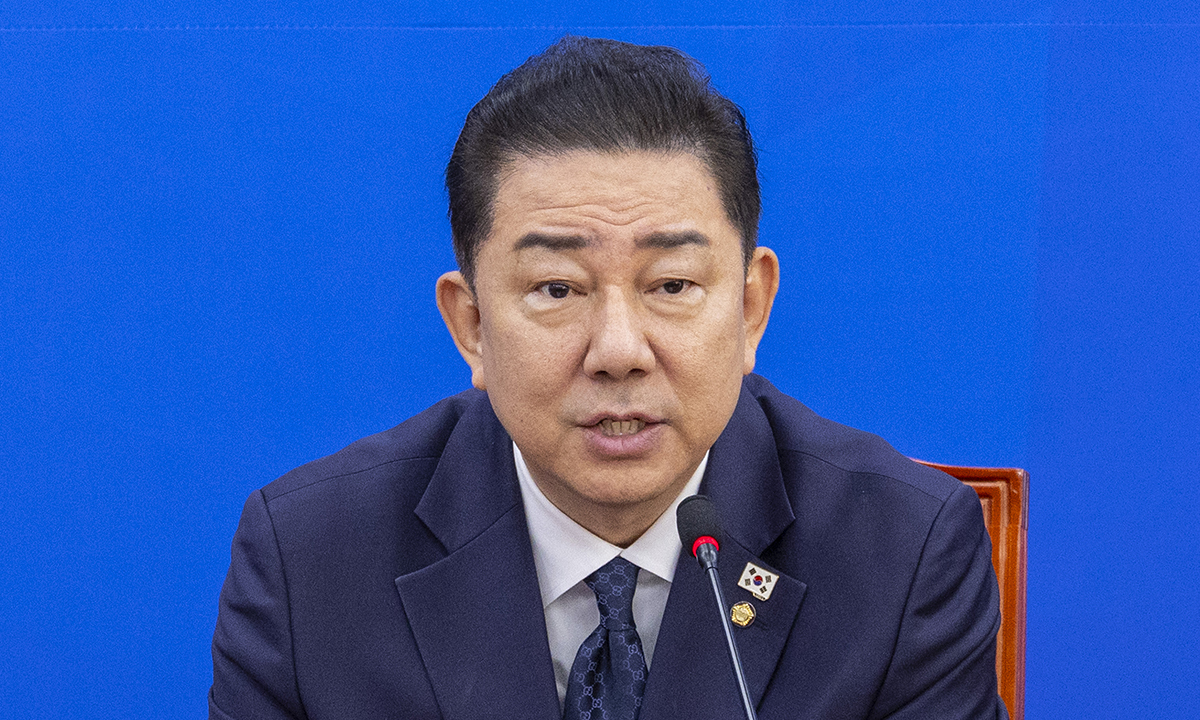 더불어민주당 김병기 원내대표가 1일 국회에서 열린 정책조정회의에서 발언하고 있다. 연합뉴스 |