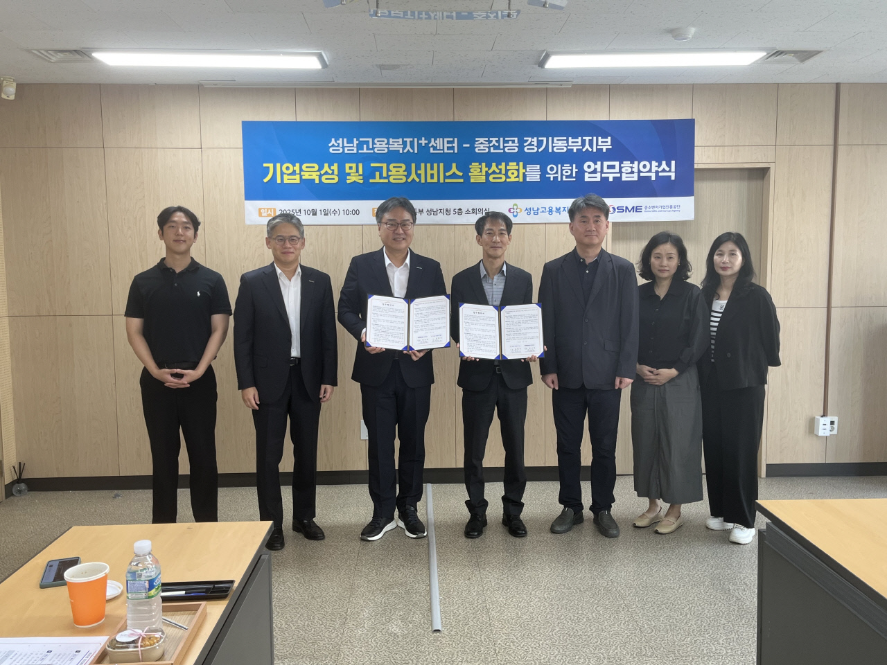 중진공 경기동부지부는 성남고용센터와 중진공 사업과 고용지원서비스 연계를 통한 기업 경쟁력 강화 및 고용서비스 활성화를 위해 업무협약(MOU)을 체결했다고 밝혔다.