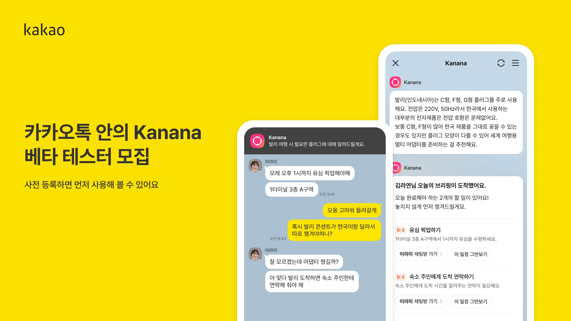 카카오가 새로운 인공지능(AI) 서비스 ‘카나나 인 카카오톡(Kanana in KakaoTalk)’의 베타 테스트에 참여할 이용자를 사전 모집한다고 1일 밝혔다.