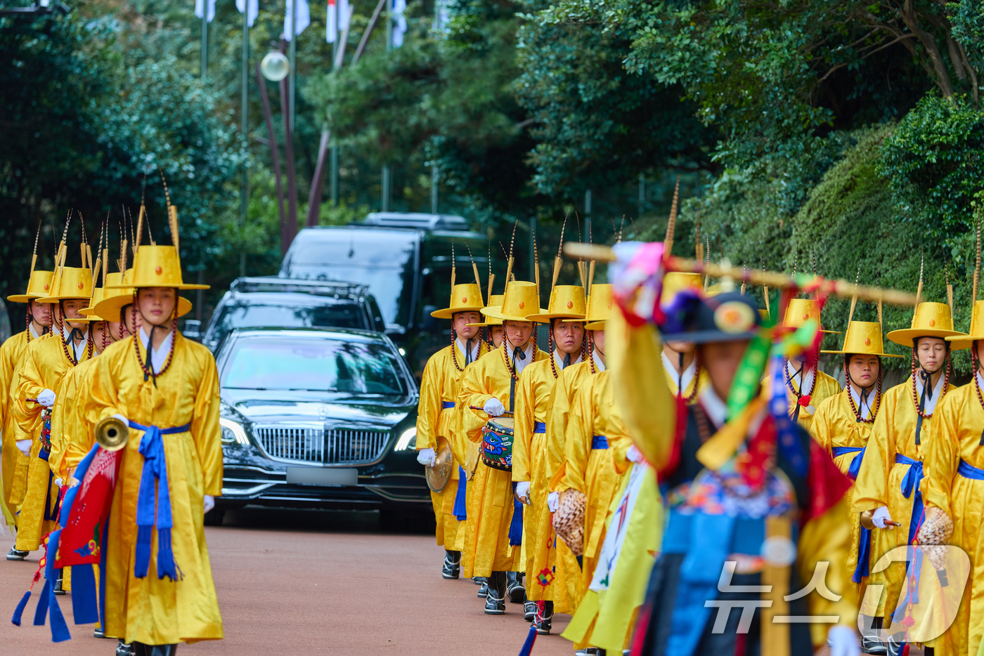 (서울=뉴스1) 허경 기자 = 이시바 시게루 일본 총리 탑승 차량이 지난 30일 의전을 받으며 부산 누리마루 APEC으로 들어오고 있다. (이재명 대통령 SNS. 재판매 및 DB 금지) 2025.10.1/뉴스1