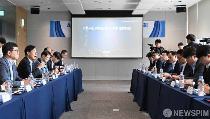 [서울=뉴스핌] 구윤철 부총리 겸 기획재정부 장관이 1일 경기도 성남시 HD현대 글로벌 R&D센터를 방문, AI선박·드론 분야 대기업, 전문가 및 관계부처와의 AI 대전환 릴레이 현장 간담회에서 모두발언을 하고 있다.[사진=기획재정부] 2025.10.01 photo@newspim.com