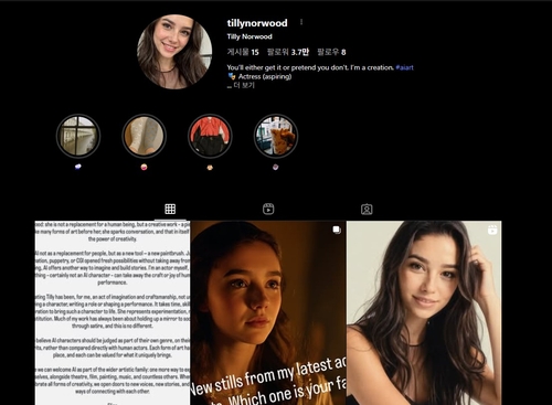 AI 배우 틸리 노우드의 인스타그램 계정 |
