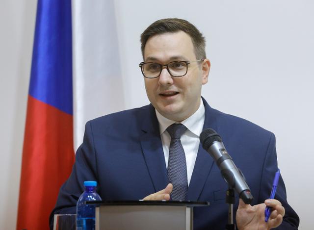 얀 리파브스키 체코 외무장관이 지난 8월 12일 우크라이나 키이우에서 우크라이나 외교장관 안드리 시비하와 회담한 후 공동 기자회견에 참석하고 있다. EPA 연합뉴스 |