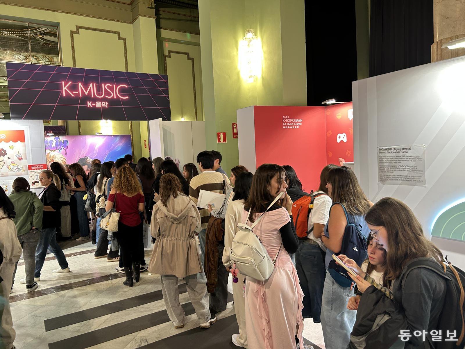 지난달 28일 스페인 마드리드 아르테스 예술센터에서 열린 ‘2025 K-엑스포’에서 관람객들이 K뮤직관에 입장하기 위해 긴 줄을 서고 있다. 마드리드=유근형 특파원 noel@donga.com |