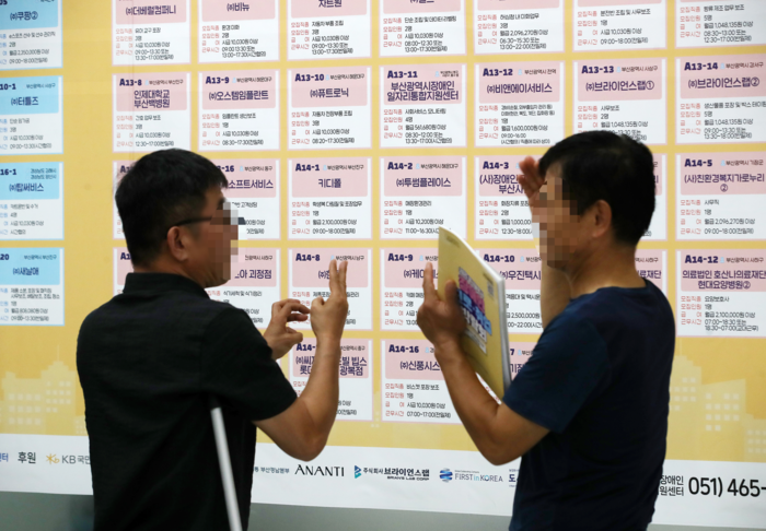 일 부산 연제구 부산시청 로비에서 열린 ‘2025 부산시 장애인 진로·취업 박람회’에서 구직자들이 채용 정보를 살펴보며 수어로 대화하고 있다. 사진과 기사는 관련 없음. [사진 = 뉴스1] |