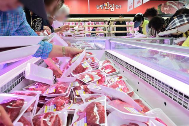 9월 21일 서울 도봉구 농협유통 하나로마트 창동점에서 열린 '소 한 마리 행사'에서 고객들이 한우를 고르고 있다.[사진=농협유통] |
