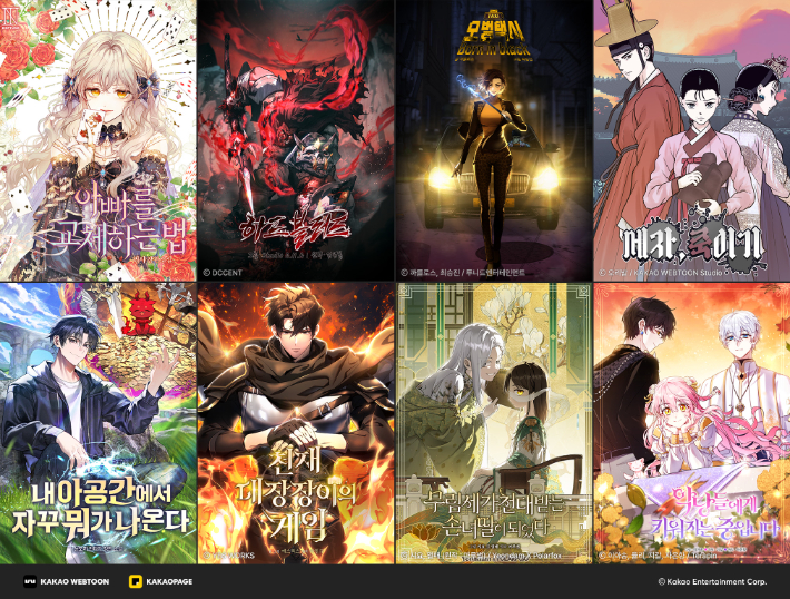 대표작으로는 카카오페이지 웹소설 최대 일매출 기록을 세운 리샤 작가의 신작 로맨스 판타지 '아빠를 교체하는 법'(3일 공개), 퓨전 판타지 '다크메이지' 김정률 작가의 세계관을 바탕으로 웹툰화된 '하프블러드'(9월 27일 공개), 드라마와 웹툰으로 인기를 끈 '모범택시'의 프리퀄 '모범택시: Born in Black'(11일 공개) 등이 눈길을 끈다.