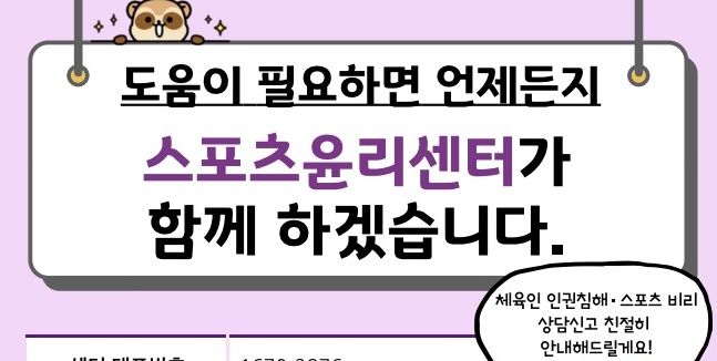 이어 “문화체육관광부에서 강조하는 단 한 번의 폭력 행위로도 스포츠계에서 영원히 퇴출당한다는 폭력 행위 무관용 처벌에 따른‘원 스트라이크 아웃’ 적용 취지에 따라 센터는 안전한 체육 환경 조성을 위해 앞으로도 최선을 다하겠다”라고 이야기했다.